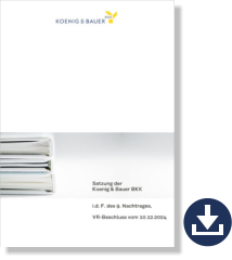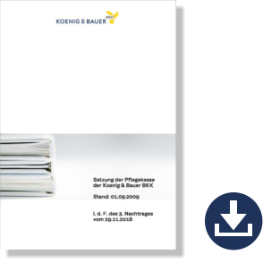 Die Satzung der Koenig & Bauer BKK In der Satzung der Koenig & Bauer BKK finden Sie Regelungen zur Mitgliedschaft, zu den Leistungen/einschließlich Mehrleistungen und zu den Beiträgen. Über Änderungen der Satzung entscheidet der Verwaltungsrat der Koenig & Bauer BKK. Die Satzung der Pflegekasse der Koenig & Bauer BKK