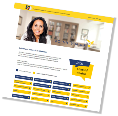 Überdurchschnittliche Leistungen Wir betreuen Sie und Ihre Familie vollumfänglich und bieten Ihnen den best möglichen Schutz. Vergleichen Sie selbst und Sie werden schnell erkennen: Auf die Koenig & Bauer BKK können Sie sich voll und ganz verlassen.